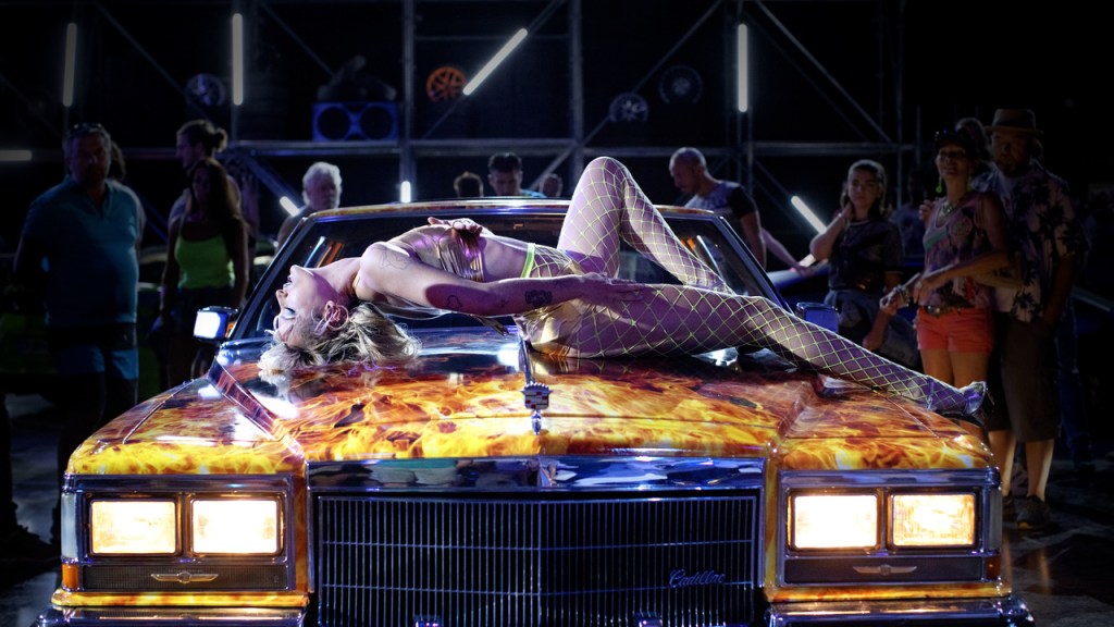 Cronenberg comparisons were already old by the time the first Palme d’Or-winning horror film hit theaters, but they remain necessary. Ducournau doesn’t (yet) have Cronenberg’s dexterity with psychologically complete characters or fully developed themes. A lot of Titane‘s transgressions, particularly early on, come off as over-eagerly existing for their own sake. But the film does take Cronenberg’s enduring subject—the link between having a body and having a psyche—and rewire it into a notably youthful study of a woman mortified by both. The young anti-heroine has a body, yes, which she uses for dancing, killing, and fetish-fucking. She has little use for parents, romantic attachments, or other people in general. And while we’re not meant to be on board with all her antisocial reflexes (that sweet girlfriend of hers didn’t have it coming), we can’t begrudge her the rest (that leering man definitely did). Thus what emerges is about sex, love, motherhood, and a hard-as-steel woman (a transgressor herself) softening, becoming vulnerable and exposed. And the way this softening is shown as both semi-involuntary and frequently horrific—not to mention caked in gender fluidity and emotional deception—gives it a compelling and passionate ambivalence that stays in your mind even after your stomach has settled. So the best comparison may not be the cutting analytical eye of Cronenberg; if you expect that, you’ll be disappointed. But the brash joys of queerness, Queerness, and throwing every ingredient into the pot? Not far from early Almodóvar.
